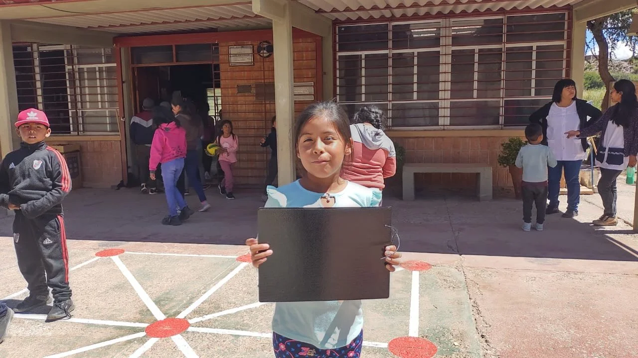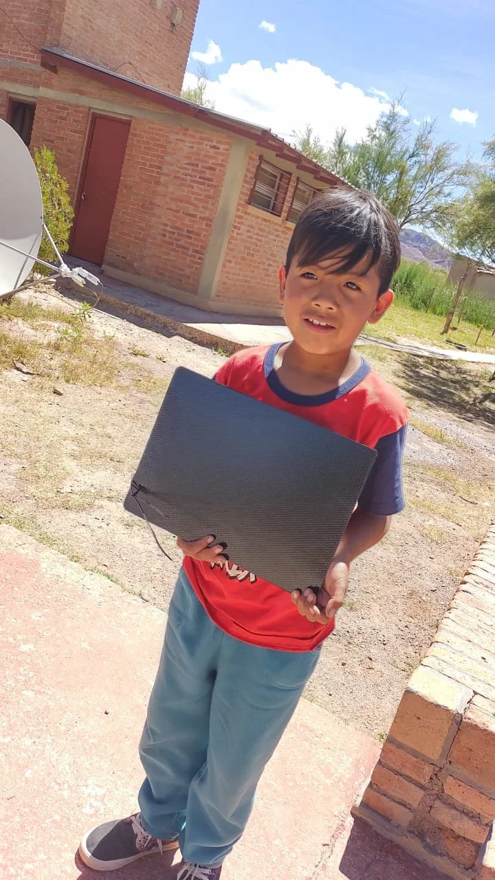 School#332 Chucalezna student enjoying the school materials donated in March 2023.