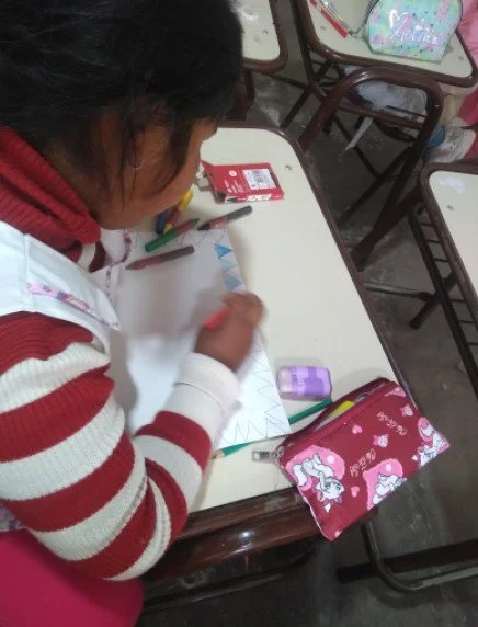 Chucalezna girl filling out her geometric drawings - March 2023.
