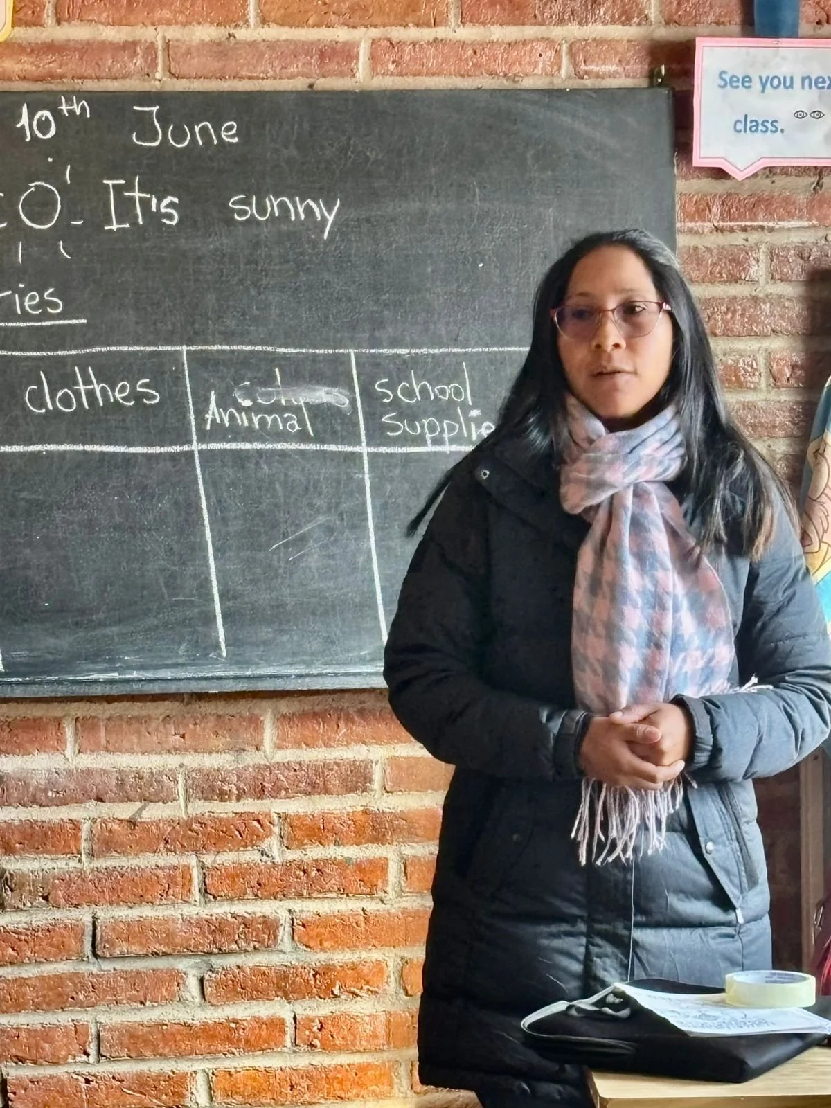 School Principal Jorge Vega and D-AR volunteer Juan Antonio Olmos showing the electric heaters donated by D-AR.