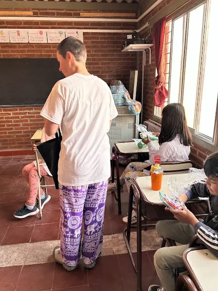 Due to Mrs. Laura Cartwright's service in the United States Army as a dental hygienist, we arranged with the school faculty for her to teach dental hygiene to all the students. I spoke with the director of a foundation in Buenos Aires, Argentina, known as 'Mana,' to provide toothpaste and brushes for 34 students. Our heartfelt gratitude goes to Mr. Javier Gomez, Mana's CEO, for all the dental hygiene materials his foundation provided to us. We completed the gift bags with dental care items: toothpaste, brushes, small towels, and plastic cups. Seeing the students' surprised eyes when they received the gifts filled our hearts with pure joy. Thank you, Laura, for sharing your love with these students!